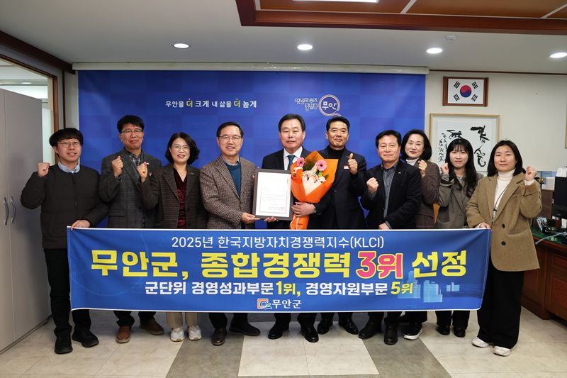 무안군, 2025년 지방자치경쟁력 전국 군 단위 3위…‘지속 성장세’