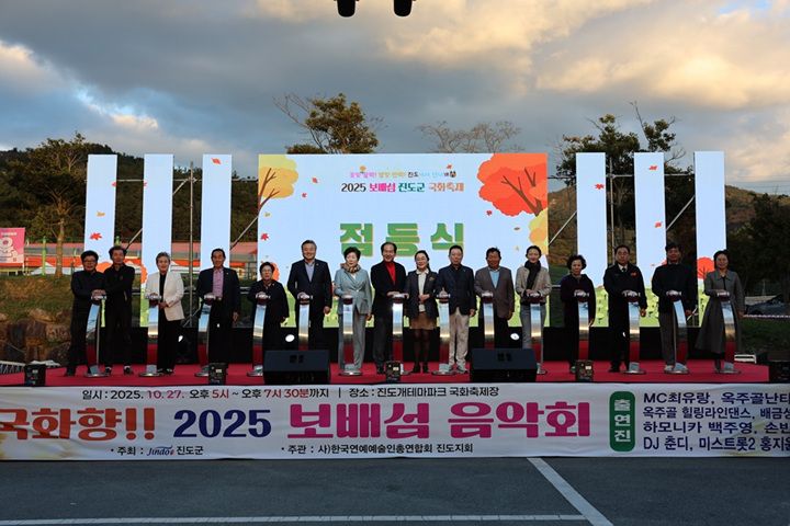 [중앙통신뉴스]진도군(군수 김희수)이 지난 27일 오후 진도개테마파크에서 ‘2025 보배섬 국화축제’의 막을 올렸다. 올해 축제는 지역 농가가 직접 키운 15만 송이 국화가 장관을 이루며, 진도만의 가을 정취를 물씬 느낄 수 있는 상생 축제로 준비됐다.
