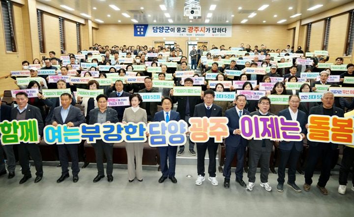 강기정 광주시장은 통합특별법으로 기대되는 20조 원 규모의 재정지원과 주요 변화에 대해 차근차근 설명했다. 더불어 담양군 발전 로드맵으로, 광주-대구 달빛철도 신설과 3순환도로(담양 대덕~화순) 확장 등 대규모 교통 인프라 구축, ‘광주다움’ 통합돌봄정책 확산, 담양호·추월산 등 생태자원을 활용한 체류형 관광벨트 조성이 제시됐다.