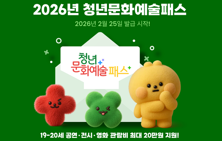 6세 이상 기초생활수급자, 차상위계층에게 문화·여행·체육 활동 기회를 보장하는 이 이용권은, 13~18세 청소년, 60~64세 생애전환기 주민에게는 1만원 더 추가 지급한다. 통합문화이용권은 이달 21일까지 자동 재충전되고, 휴대전화 문자로 알려 준다. 공연·전시 관람에 쓸 수 있는 청년문화예술패스는 19세에서 19~20세로 확대해 지급한다. 지원금액도 15만원에서 20만원으로 늘리고, 영화관도 사용처에 추가해 최대 4회까지 이용할 수 있게 만들었다.