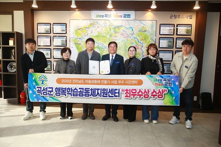 [중앙통신뉴스]곡성군 행복학습공동체지원센터가 전라남도 주최 ‘2025년 마을공동체 한마당’에서 시군 우수센터 부문 최우수상의 영예를 안았다. 이번 수상은 지역 공동체 활성화와 지속적인 지원, 그리고 협력 네트워크 구축에서 높은 평가를 받은 결과다.