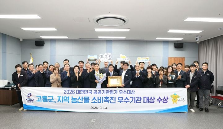 [중앙통신뉴스│정책뉴스]고흥군이 자체 온라인 쇼핑몰인 ‘고흥몰’을 통해 지역 농산물 소비 촉진에 앞장선 공로를 인정받아 ‘2026 대한민국 공공기관평가 우수대상’을 수상했다.