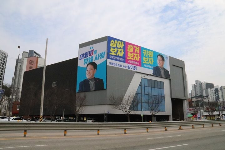 강 후보는 “좋은 성과로 이재명 정부의 성공을 빛내겠다”는 의미를 담은 ‘빛명 캠프’ 개소를 통해 이재명 정부와의 긴밀한 협력을 강조하고 있다.