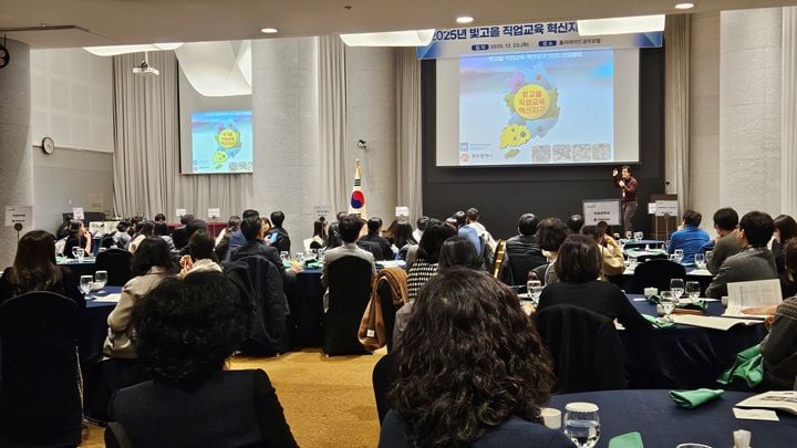 [중앙통신뉴스]광주광역시교육청(교육감 이정선)이 지난 23일, 홀리데이인 광주호텔에서 ‘2025 빛고을 직업교육 혁신지구 성과공유회’를 열고, 지역 고졸 인재 육성 및 취업 활성화 방안을 모색했다.