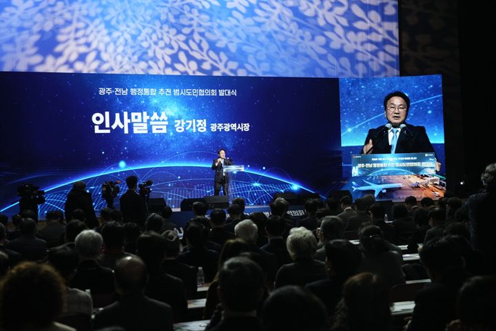 16일 오후, 광주 김대중컨벤션센터에서 광주광역시와 전라남도가 공동으로 ‘광주·전남 행정통합 추진 범시도민 협의회’ 발대식을 열었다. 이 자리에는 강기정 광주시장, 김영록 전남지사, 시·도교육감과 시·도의회 의원, 시민사회와 경제, 학계, 노동계 등 지역의 각계 대표 500여 명이 한마음으로 참석했다.