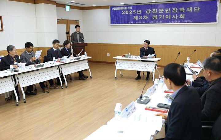 [중앙통신뉴스]강진군민장학재단(이사장 강진군수)은 지난 11일 강진군청 소회의실에서 2025년 제3차 정기 이사회를 열고, 내년도 장학사업 및 교육지원사업 추진 계획을 확정했다.