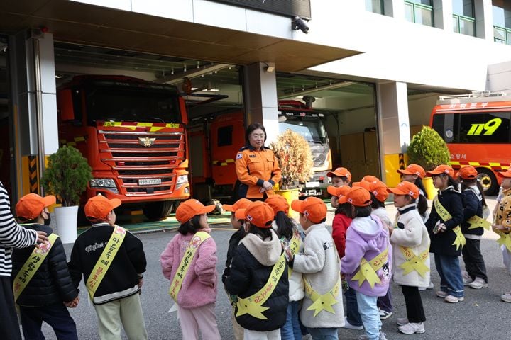 체험 프로그램도 이어졌다. 아이들은 소방차와 구급차 내부를 살펴보고, 소방관들과 인사를 나누며 경험을 쌓았다. 참여한 어린이들에게는 119구조견 '일구' 캐릭터 키링과 스티커가 선물로 전해져 즐거운 추억을 남겼다.