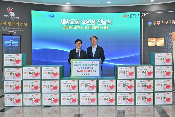 [중앙통신뉴스]광주 서구(구청장 김이강)는 20일 서구청 1층 기부자 명예의전당에서 새밝교회(담임목사 차진승)로부터 돌봄이웃 지원을 위한 생필품 50박스 등 650만원 상당의 후원품을 기탁받았다.