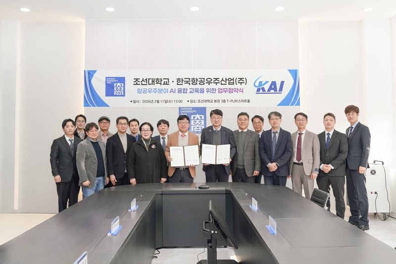 교육 커리큘럼도 현장에 초점을 맞췄다. 조선대는 AI 융합 교육과정 플랫폼 구축과 함께 관련 산업계에서 직접 강사진을 초빙한다. KAI와 참여기업 12곳(한성에스앤아이, 타임기술, 케이엘티시스템즈, 티에스아이, 비브스튜디오스 등)은 AI 인프라와 인턴십, 몰입형 현장실습을 지원할 계획이다.