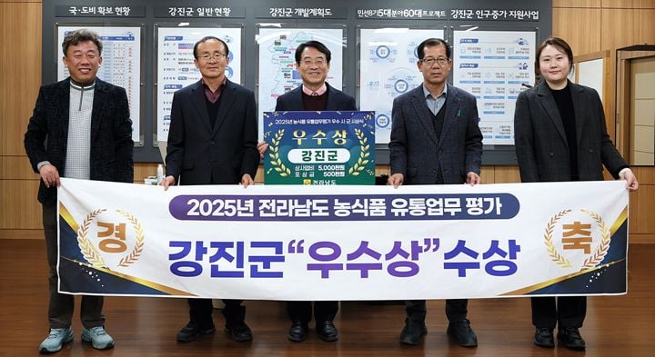 [중앙통신뉴스]강진군(군수 강진원)이 전라남도가 주관한 ‘2025년 농식품 유통업무 평가’에서 우수상을 수상하며, 농식품 유통정책의 선도 지자체로 주목받았다.