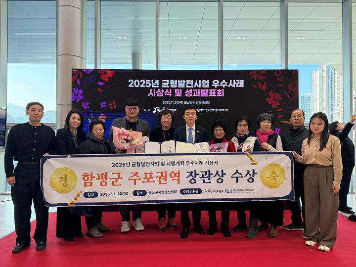 함평군은 올해 ‘주포권역다목적센터’가 대통령직속 지방시대위원회가 주최한 ‘2025년 균형발전사업 우수사례 시상식’에서 행정안전부 장관상을 수상했다고 26일 밝혔다. 이 센터는 농어촌 지역의 자연환경과 관광 자원을 적극적으로 활용하며, 지역 주민이 운영의 중심이 되는 지속가능한 비즈니스 모델로 평가받았다.