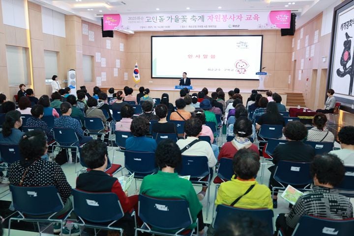 지난 14일 군청 대회의실에서 진행된 이번 교육에서는 양지현 사람숲컨설팅 대표가 ‘자원봉사의 가치와 의미’를 주제로 특강을 진행했다. 이어 축제기획팀장과 여성친화팀장이 각각 가을꽃 축제 운영 현황과 자원봉사자의 역할, 현장 배치 등에 대해 안내했다.