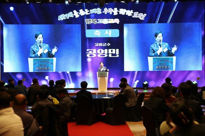 특히 이날 공개된 ‘행복 고흥교육 비전’은 세계, 배움, 우주항공, 도전, 행복 등 다섯 가지 핵심 가치를 중심으로, 교육 당사자와 지역이 함께 비전 실현에 동참하겠다는 의지를 담았다. 이어 열린 실천 다짐 퍼포먼스에서는 고흥교육을 이끌 주요 기관 장들이 무대에 올라 공동 선언문을 낭독하며, 지역과 학교가 손잡고 고흥형 교육 혁신을 이루겠다는 약속을 다졌다.