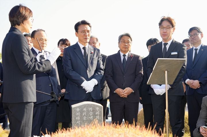 포토뉴스강기정 광주시장, 김민석 국무총리와 국립5‧18민주묘지 참배윤 산 기자입력북마크공유가글자크기프린트댓글ⓒ광주광역시[중앙통신뉴스]강기정 광주광역시장이 26일 오후 김민석 국무총리와 함께 국립5‧18민주묘지를 찾아 참배하고 있다. ⓒ광주광역시윤 산 기자카카오톡페이스북트위터밴드URL복사