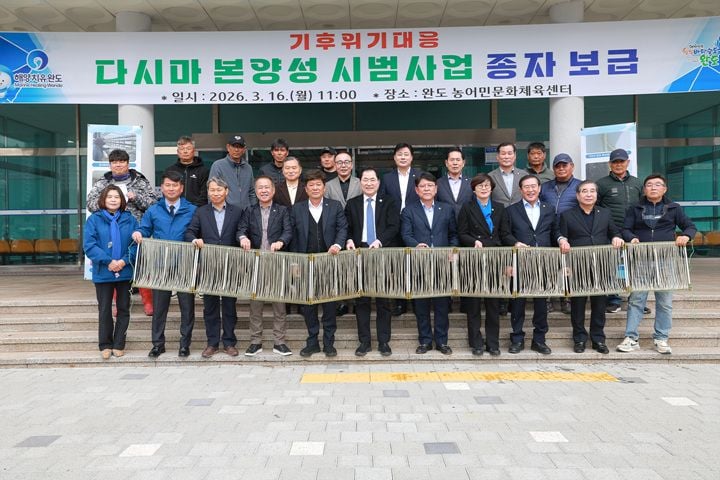 완도군은 3월 16일 농어민문화체육센터에서 지역 어업인 및 관계기관과 합동 간담회를 열고, 금일읍, 노화읍, 청산면, 보길면, 생일면 등 6개 어촌계에 1,000여 개의 다시마 종자 틀을 공급했다. 이번에 분양된 종자는 가이식 없이 바로 양식장에 투입할 수 있어, 어업인들은 해상 시험 양식 및 주기적인 생육 상태 모니터링을 함께 진행한다.