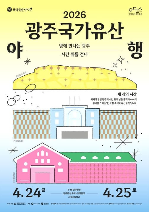 ‘2026 광주 국가유산 야행’은 4월 24일과 25일, 5·18민주광장, 광주읍성유허, 서석초등학교 등 동구의 대표적 국가유산 일원에서 펼쳐진다.