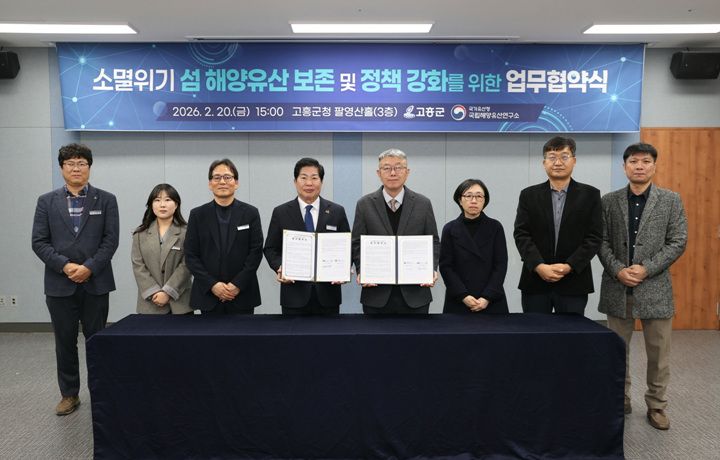 고흥군(군수 공영민)은 20일 군청 팔영산홀에서 국가유산청 산하 국립해양유산연구소(소장 이은석)와 ‘섬 해양유산 조사 및 기록을 위한 업무협약’을 맺고 본격적인 공동 조사에 나선다고 밝혔다.