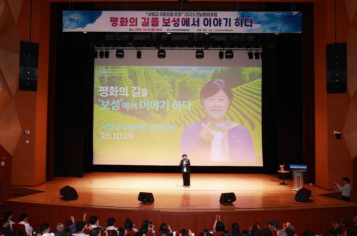 [중앙통신뉴스]보성군(군수 김철우)이 지난 10일 군문화예술회관에서 진행된 ‘서영교 국회의원 초청 2025 전남평화포럼’을 성황리에 개최하고, 700여 명의 군민과 함께 한반도 평화와 남북 교류의 실천적 방향을 모색했다. 이날 포럼은 (사)전남남북교류평화센터의 주최로 마련됐다.
