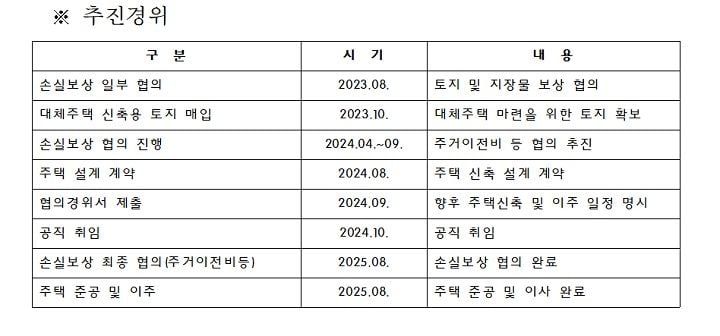 군은 “토지 및 지장물 보상 이후 주거이전비 등 후속 절차가 단계적으로 진행됐으며, 대체주택 마련 이후 이주가 완료됐다”고 설명했다.