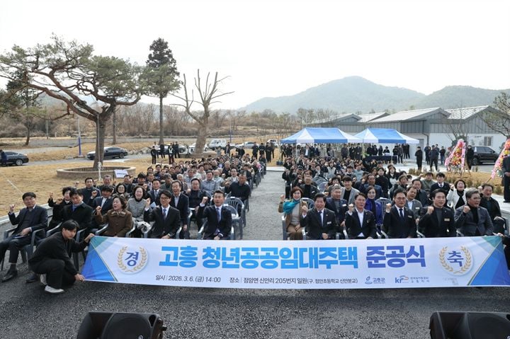 군은 6일 구 점암초등학교 신안분교 부지에서 ‘고흥 청년 공공임대주택’ 준공식을 개최했다. 이 자리에는 공영민 군수를 비롯해 지역 도의원, 사회단체장, 청년 당사자 등 200여 명이 참석해 의미를 더했다.