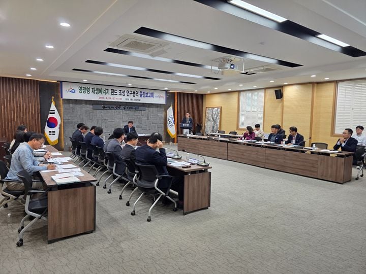 영광군이 지역 주민이 직접 참여하는 재생에너지 펀드 도입을 본격적으로 추진한다. 영광군은 24일 송광민 부군수 권한대행을 비롯해 관계자 20여 명이 참석한 가운데 ‘영광형 재생에너지 펀드 조성 연구용역’의 중간보고회를 열었다.