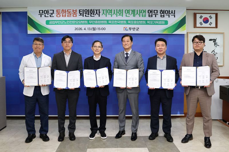 군은 지난 13일 군청에서 무안종합병원, 공립무안군노인전문요양병원, 목포한국병원, 목포중앙병원, 목포기독병원 등 5개 의료기관과 ‘퇴원환자 지역사회 연계사업’ 협약을 맺었다고 밝혔다. 이 협약으로 퇴원과 동시에 도움이 필요한 환자들을 군과 의료기관이 함께 발굴하고, 맞춤형 복귀지원 서비스를 제공할 계획이다.