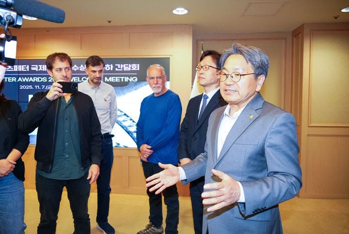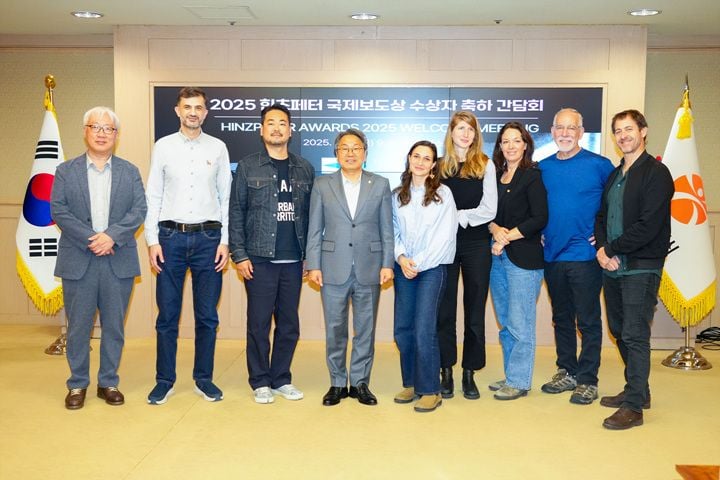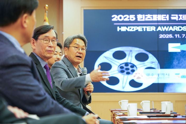 [중앙통신뉴스]강기정 광주광역시장이 7일 오전 시청 내 비즈니스룸에서 제5회 힌츠페터 국제보도상 수상자들과 뜻깊은 간담회를 열었다.