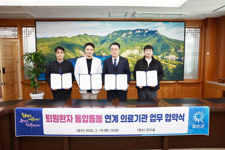 [중앙통신뉴스│정책뉴스]화순군이 퇴원환자의 지역사회 복귀를 돕기 위해 의료·요양 통합돌봄 연계체계를 본격적으로 구축하고 나섰다. 군은 지난 19일 화순고려병원, 화순중앙병원, 화순성심병원 등 지역 주요 의료기관과 ‘의료·요양 통합돌봄 퇴원환자 연계의뢰’ 업무협약을 체결했다.
