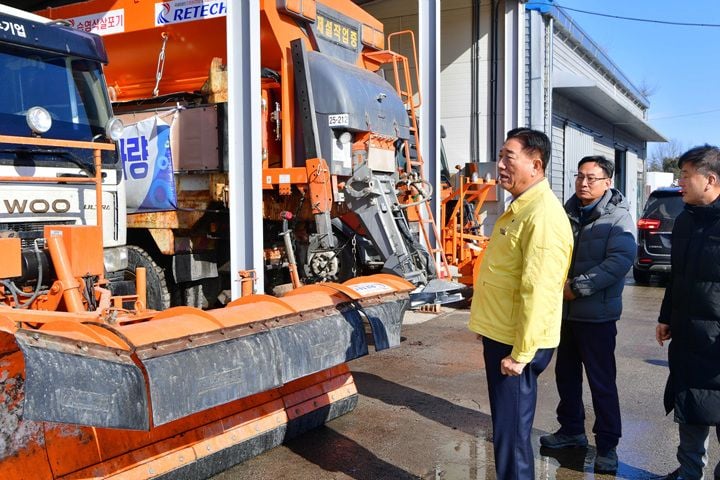 눈이 내리자 군은 신형 ‘톤백 안전 절개기’를 도입해 제설제 적재 작업의 안전성을 높였고, 노후 장비도 신속히 교체했다.