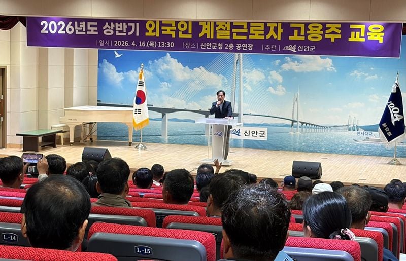군에 따르면, 지난 16일 신안군청 2층 공연장에서 2026년 상반기 외국인 계절근로자를 고용하는 농·어업 현장주들이 한자리에 모였다. 이 자리에서는 올해부터 강화된 고용주 책임 사항과 함께 임금체불보증 보험, 농어업인 안전 보험, 계절근로자 상해보험 등 ‘3대 의무보험’ 가입 실무가 중점적으로 안내됐다.