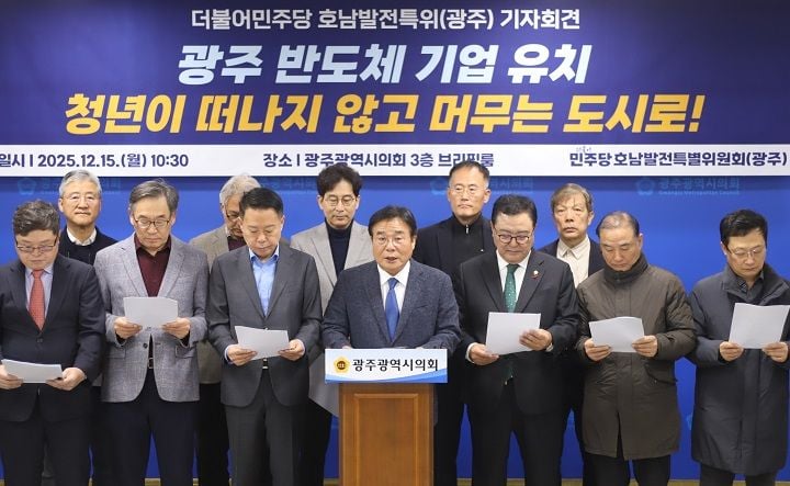 이날 기자회견에는 이병훈 수석부위원장을 비롯한 호남발전특위 광주위원들이 참석했으며, 청년 인구 유출과 지역산업 약화 문제를 근본적으로 해결하기 위한 산업 대전환 전략으로 반도체 산업 기반 조성의 필요성을 강조했다.