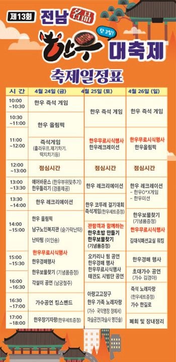 이번 축제에서는 전남에서 키운 품질 좋은 한우고기를 최대 51%까지 할인된 가격에 만나볼 수 있다. 현장에서는 할인 판매 외에도 한우 시식, 소비자 참여형 이벤트 등 다채로운 프로그램이 마련돼, 온 가족이 함께 즐길 수 있는 축제로 꾸며질 예정이다.