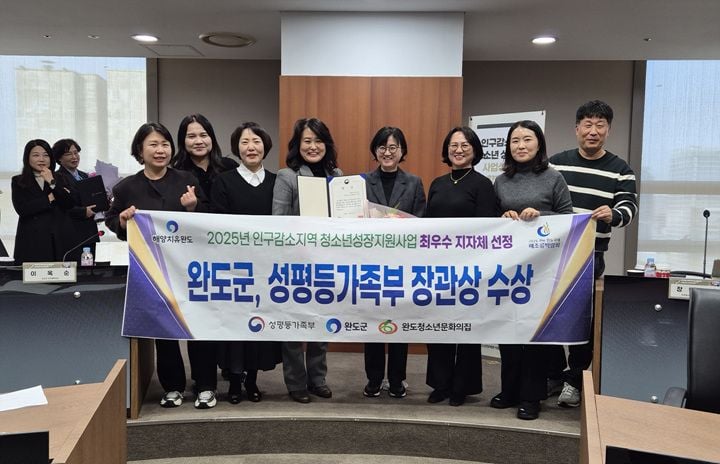 [중앙통신뉴스]완도군(군수 신우철)이 지방소멸 위기 극복과 청소년 성장 환경 조성을 위한 혁신적 시도로 ‘2025년 인구감소지역 청소년 성장 지원 사업’ 첫해에 전국 최우수 지자체로 선정됐다. 이에 따라 성평등가족부 장관상이라는 의미 있는 상을 품에 안았다.