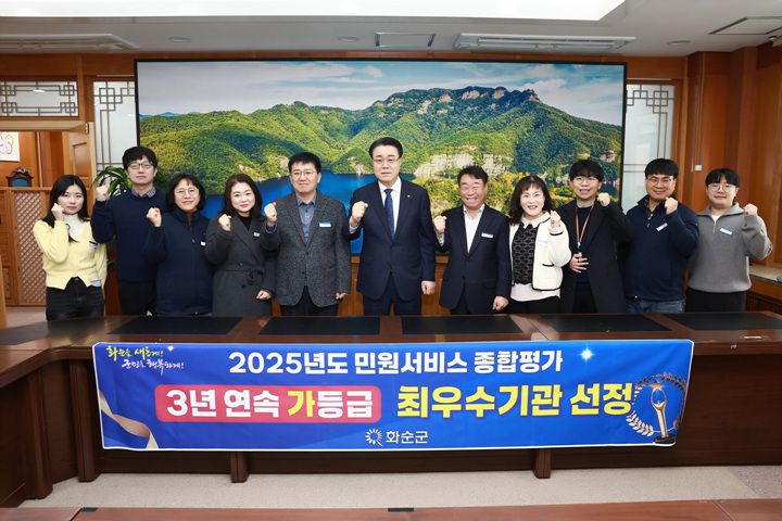 [중앙통신뉴스│정책뉴스]화순군이 행정안전부와 국민권익위원회가 공동 진행한 ‘2025년 민원서비스 종합평가’에서 전국 최고 등급인 ‘가’ 등급을 받아 3년 연속 최우수기관에 오르는 기염을 토했다.