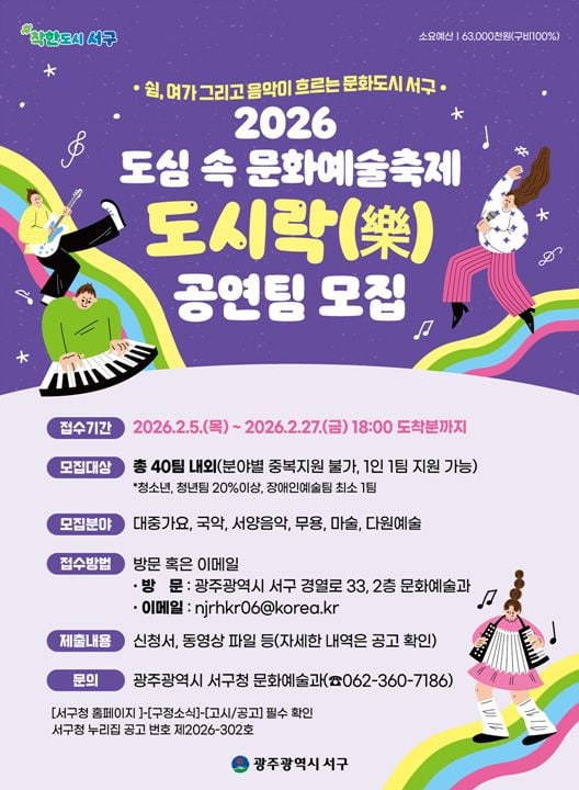 광주 서구 ‘도시 락’ 개막..지역예술인 모집·문화공연 테마 확대