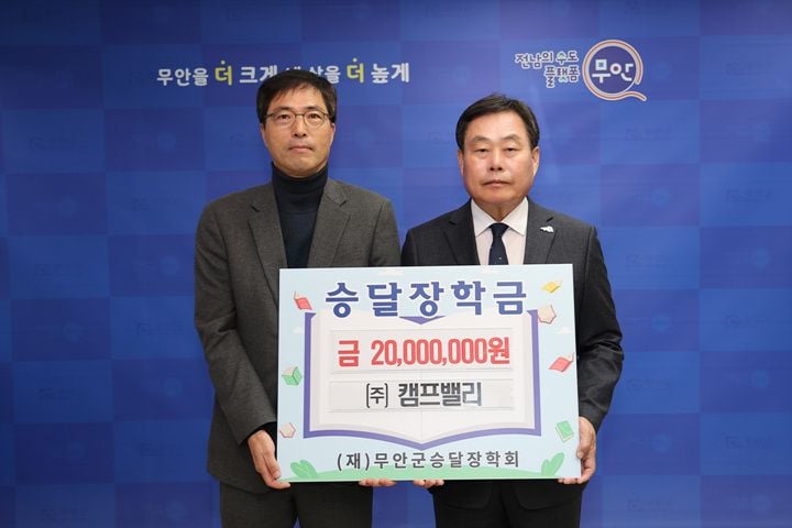 김산 무안군수 역시 “캠프밸리의 지속적인 장학금 기부로 많은 학생들이 희망을 키우고 있다”며 깊은 고마움을 전했다. 군은 전달받은 장학금을 지역 학생들의 다양한 학업 지원에 활용할 예정이다.