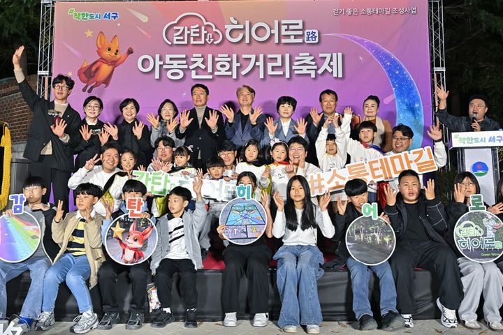 [중앙통신뉴스]광주 서구(구청장 김이강)가 지역 내 아이들의 상상력과 친환경 가치가 어우러진 ‘감탄히어로’ 거리를 완성해 관심을 끌고 있다. 서구는 지난 15일 치평동 운천어린이공원 일대 보행자전용도로에서 아동과 가족이 함께하는 ‘아동친화거리 축제’를 개최하며 거리의 공식적인 출발을 알렸다.