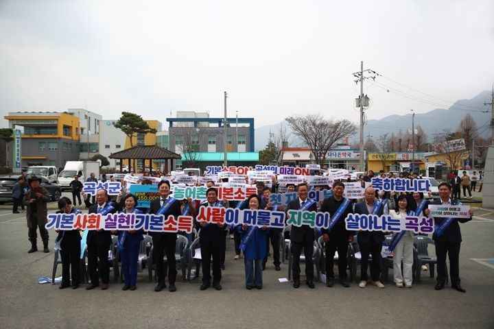 [중앙통신뉴스│정책뉴스]전남 곡성군이 30일, 곡성기차마을 전통시장에서 농어촌 기본소득의 첫 지급을 기념하는 ‘기본소득데이 0330’ 행사를 열었다. 이번 행사는 곡성군이 지난해 농어촌 기본소득 시범지역으로 선정된 후 약 3개월에 걸친 준비 끝에 이뤄졌으며, 군민 100여 명이 함께해 뜨거운 관심을 증명했다.