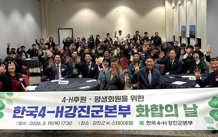 [중앙통신뉴스│정책뉴스]한국4-H강진군본부(회장 윤윤근)는 지난 19일, 강진 K-스테이호텔에서 ‘2026 화합의 날’을 성황리에 개최하며 강진 4-H의 끈끈한 전통과 새 출발을 알렸다. 선후배를 비롯해 평생회원, 후원회원 등 4-H 가족들이 한 자리에 모여, 그간의 발자취를 돌아보고 앞으로의 도약을 약속하는 뜻 깊은 시간을 가졌다.