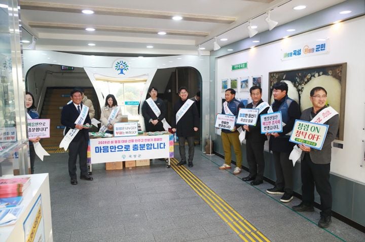 [중앙통신뉴스│정책뉴스]전남 곡성군이 설 명절을 앞두고 깨끗한 공직문화를 다지기 위한 청렴 실천 행보에 나섰다. 군은 지난 4일 청사 출입구 앞에서 '선물 안 주고 안 받기'를 주제로 캠페인을 열고, 청탁금지법 준수와 청렴의 중요성을 다시 한 번 강조했다.