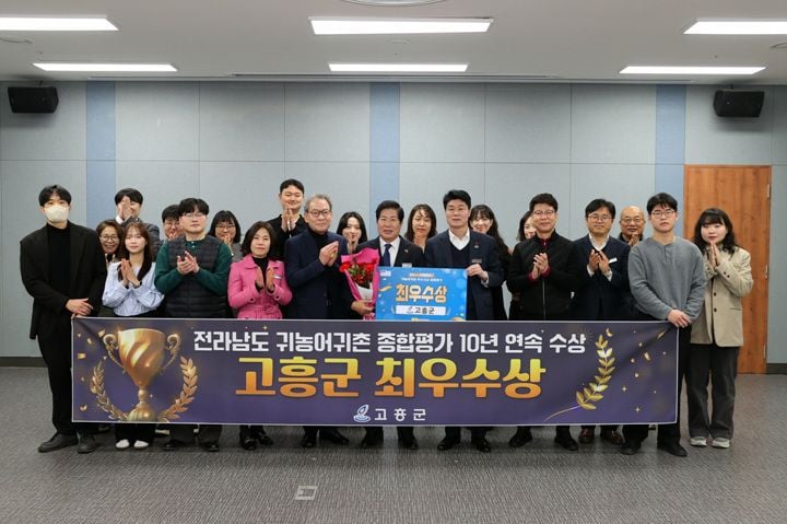[중앙통신뉴스]고흥군(군수 공영민)이 전라남도가 주관한 2025년 귀농어귀촌 종합평가에서 지난해에 이어 올해도 ‘최우수상’을 받으면서, 이 분야에서 10년 연속 수상의 완벽한 기록을 이어갔다.