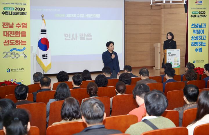 [중앙통신뉴스]전라남도교육청(교육감 김대중)이 지난 29일 순천삼산중학교에서 ‘2025 중등 2030수업나눔 한마당’을 개최했다. 현장에는 전남 지역 중등 교사와 교육 전문가, 학생, 학부모 등 1,000여 명이 함께해, 전남만의 색깔이 묻어나는 미래 교실 수업 방향을 모색하는 열띤 장이 펼쳐졌다.
