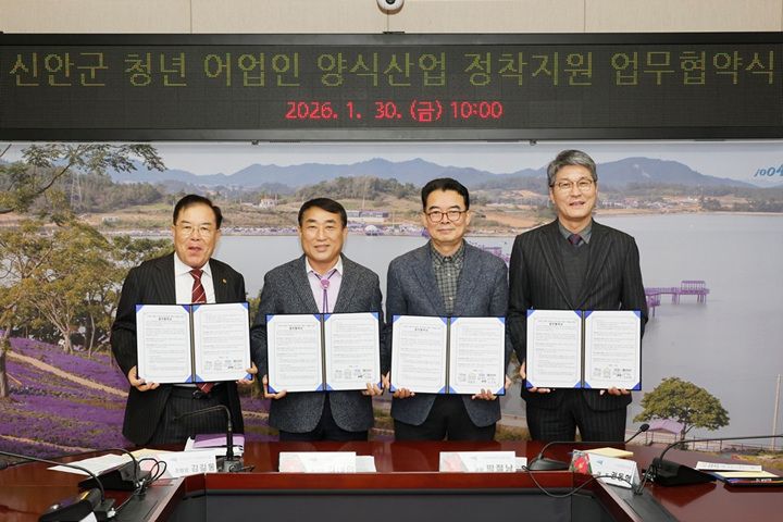 지난 1월 30일, 신안군은 군청에서 ‘청년 어업인 양식산업 정착지원’을 위한 업무협약을 체결했다. 이날 행사에는 군수 권한대행과 신안해양과학고등학교장, 신안군수산업협동조합장, 신안천사김 대표 등 각 기관 인사들이 자리해 힘을 모았다.