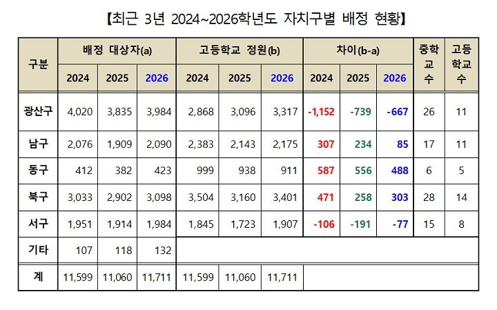2026학년도 광주 일반고 신입생 배정 결과 나왔다