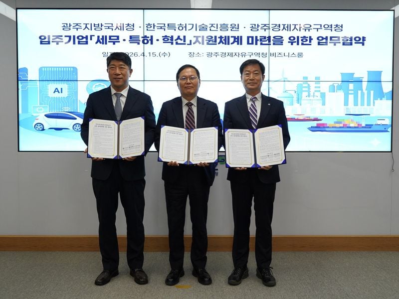 광주경제자유구역청이 지역 전략산업 기업의 성장과 혁신 경쟁력 강화를 위해 본격적으로 팔을 걷어붙였다. 15일, 광주경자청 비즈니스룸에서는 광주지방국세청, 한국특허기술진흥원과 함께 ‘전략산업 기업 육성 및 기술 경쟁력 강화를 위한 3자 업무협약’을 맺었다.