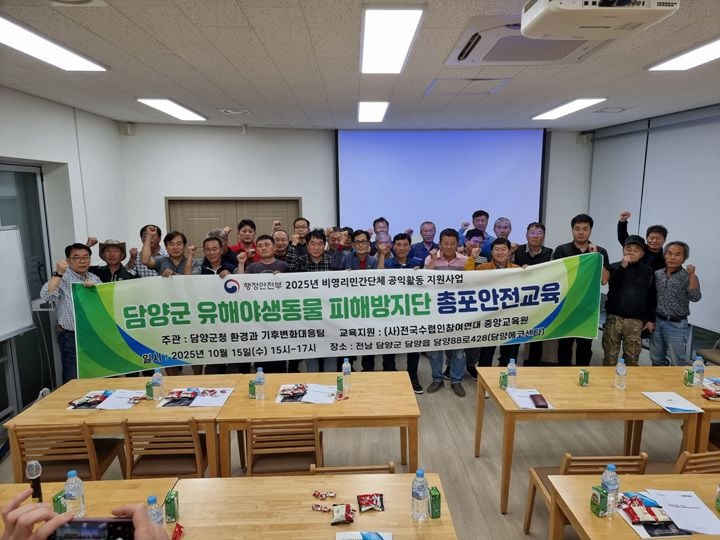 [중앙통신뉴스]담양군(군수 정철원)이 지난 15일 에코교육관에서 2025년 하반기 유해야생동물 기동포획단을 대상으로 안전교육을 진행했다.