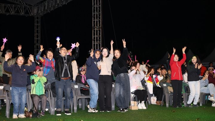 제10회 강진만 춤추는 갈대축제가 지난 25일 강진만 생태공원에서 막을 올린 가운데 관광객들이 중앙무대 공연을 보며 흥겨워하고 있다.
