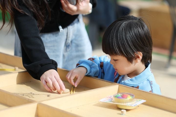 제10회 강진만 춤추는 갈대축제가 지난 25일 강진만 생태공원에서 막을 올린 가운데 한 어린이가 목재 체험을 하고 있다.
