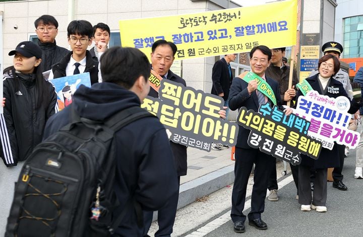 강 군수는 학부모, 교직원, 군의회, 후배 학생들과 함께 응원 피켓을 들고 수험생들을 격려했으며, “긴 시간 쏟아온 노력이 오늘 좋은 결실로 이어지길 바란다”고 밝혔다. 또 “여러분이 꿈을 이루는 데 있어 군에서도 적극적으로 힘을 보태겠다”며 든든한 지지 의사를 전했다.