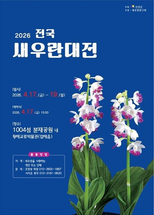 한편, 참가를 원하는 개인이나 단체는 신안군 또는 새우란연구회에 문의해 출품 일정에 맞춰 작품을 접수하면 된다. 보다 자세한 내용은 군 홈페이지나 연구회를 통해 확인할 수 있다.